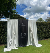 Transform your event space with our stunning 3x3m draped backdrop, featuring custom silk signage designed exclusively for your occasion. This versatile piece creates an elegant focal point for photography, presentations, or brand activation. The personalised sign is yours to keep as a lasting memento after your event concludes. Perfect for weddings, corporate functions, product launches, and celebrations, this backdrop combines professional presentation with bespoke customisation. Elevate your event's visual impact with a backdrop that's as unique as your vision.